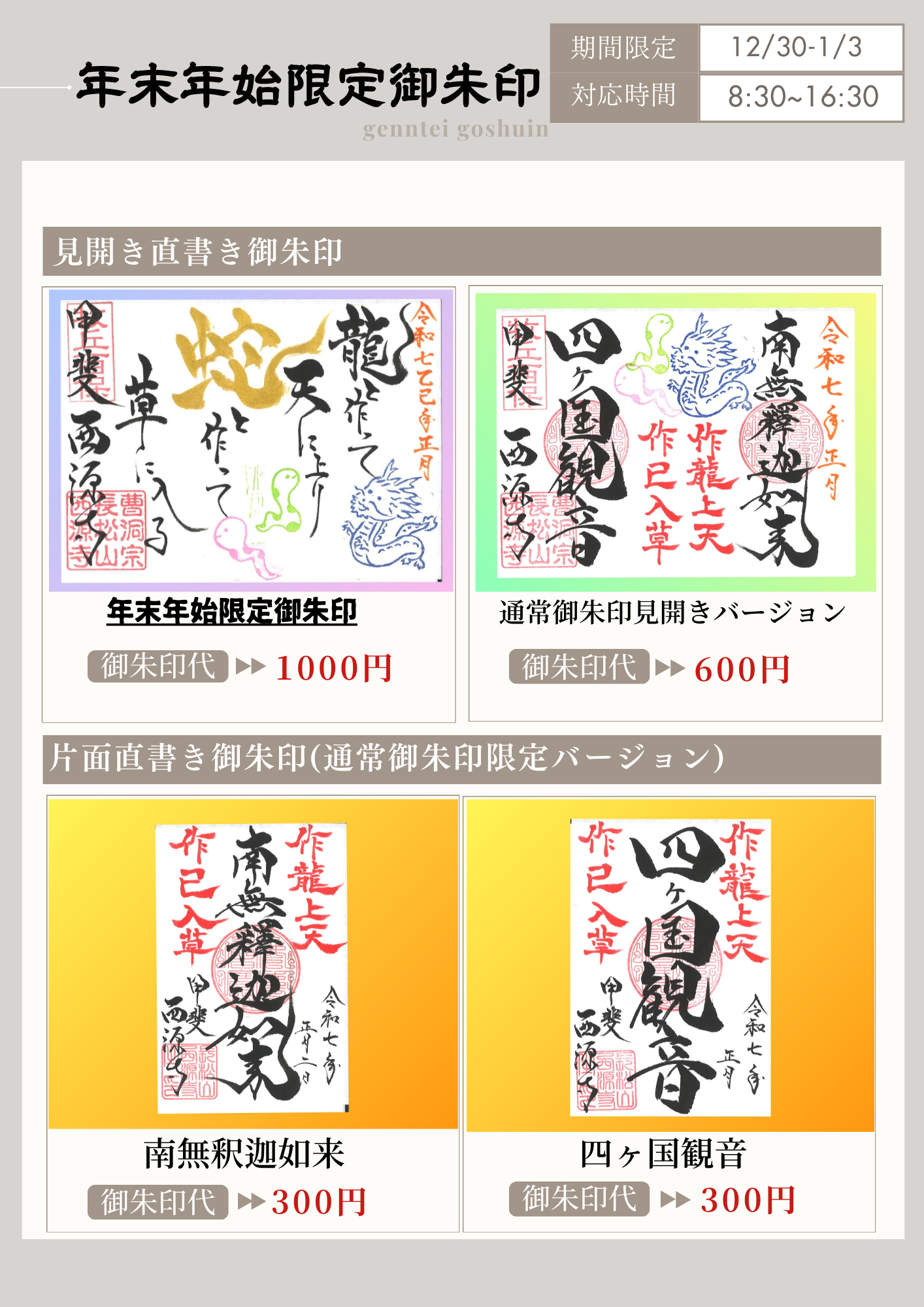 布袋尊、阿弥陀如来の見開き御朱印授与は9月末まで延長します。
