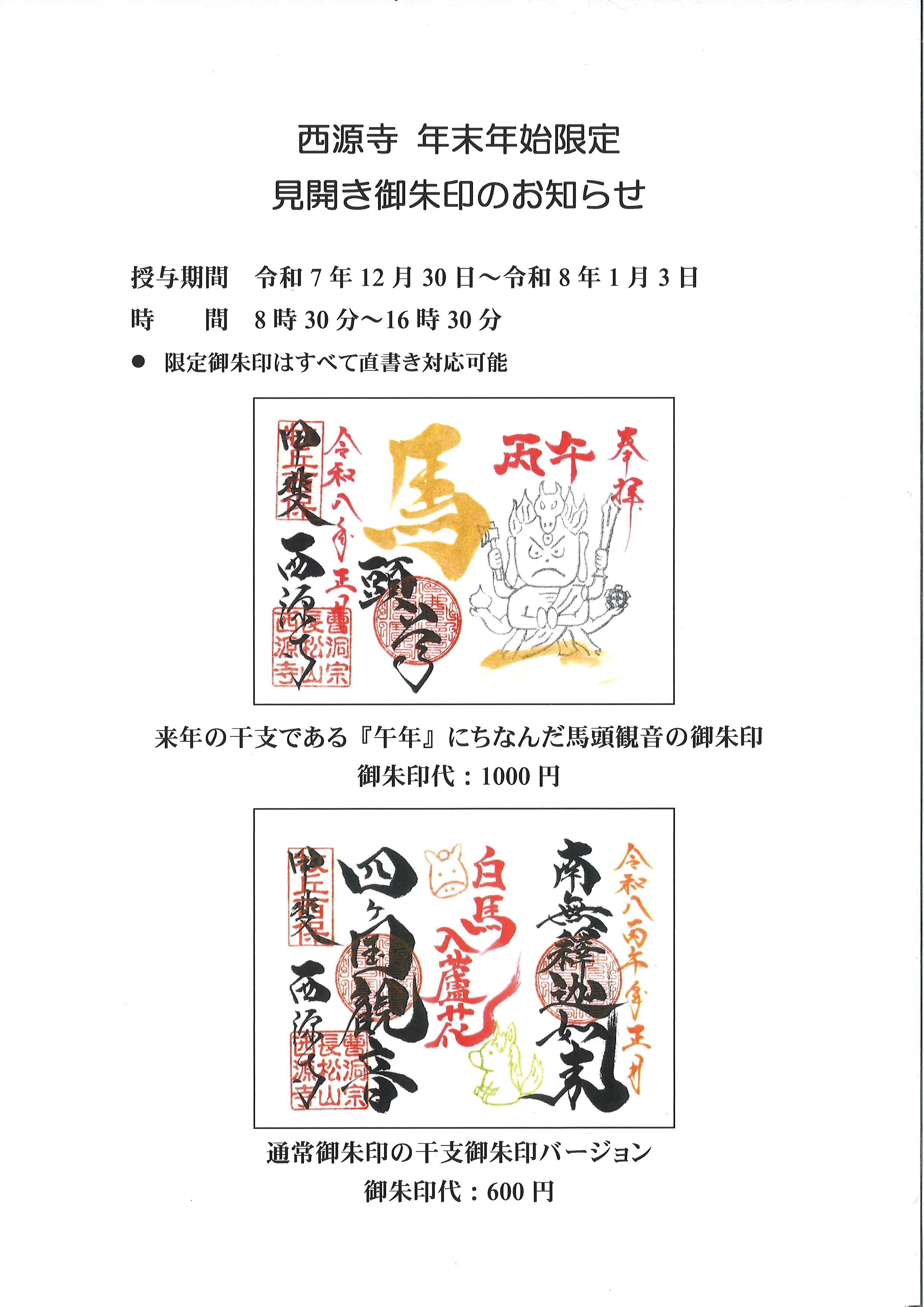 布袋尊、阿弥陀如来の見開き御朱印授与は9月末まで延長します。